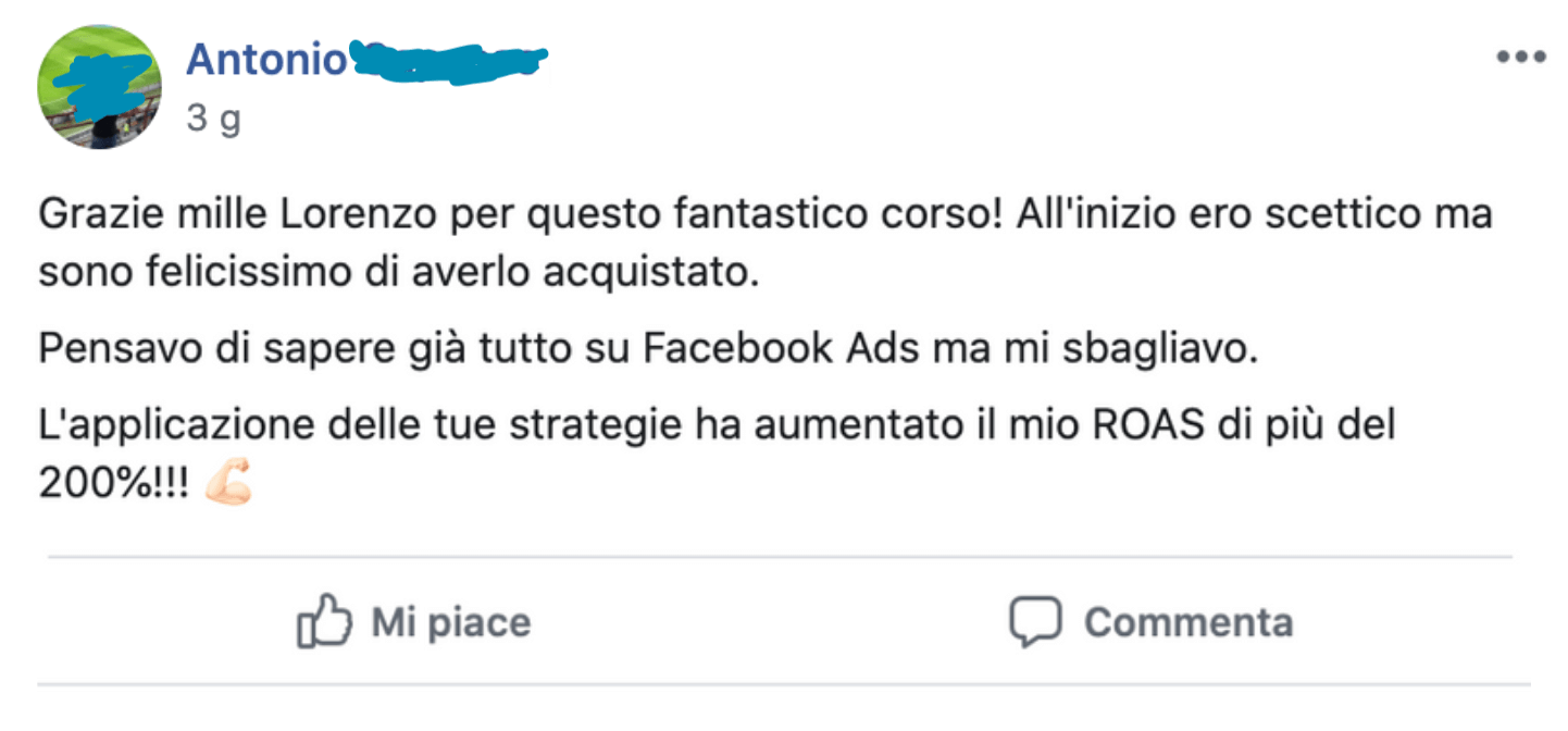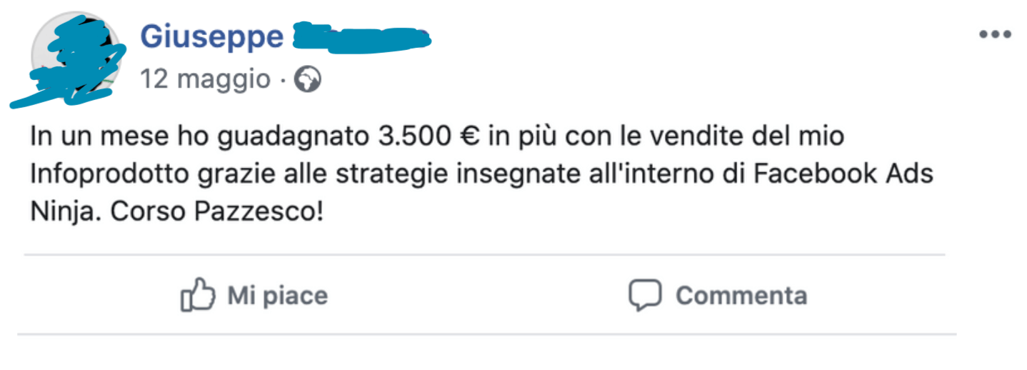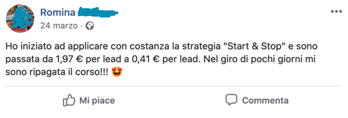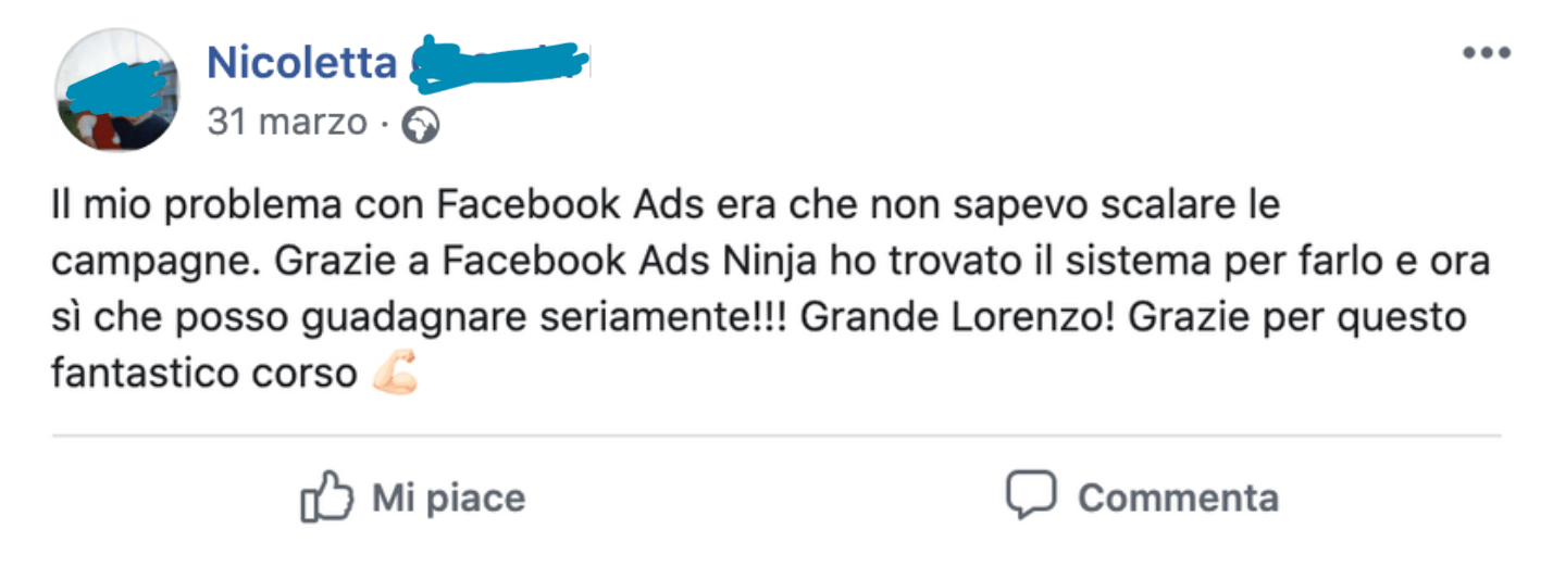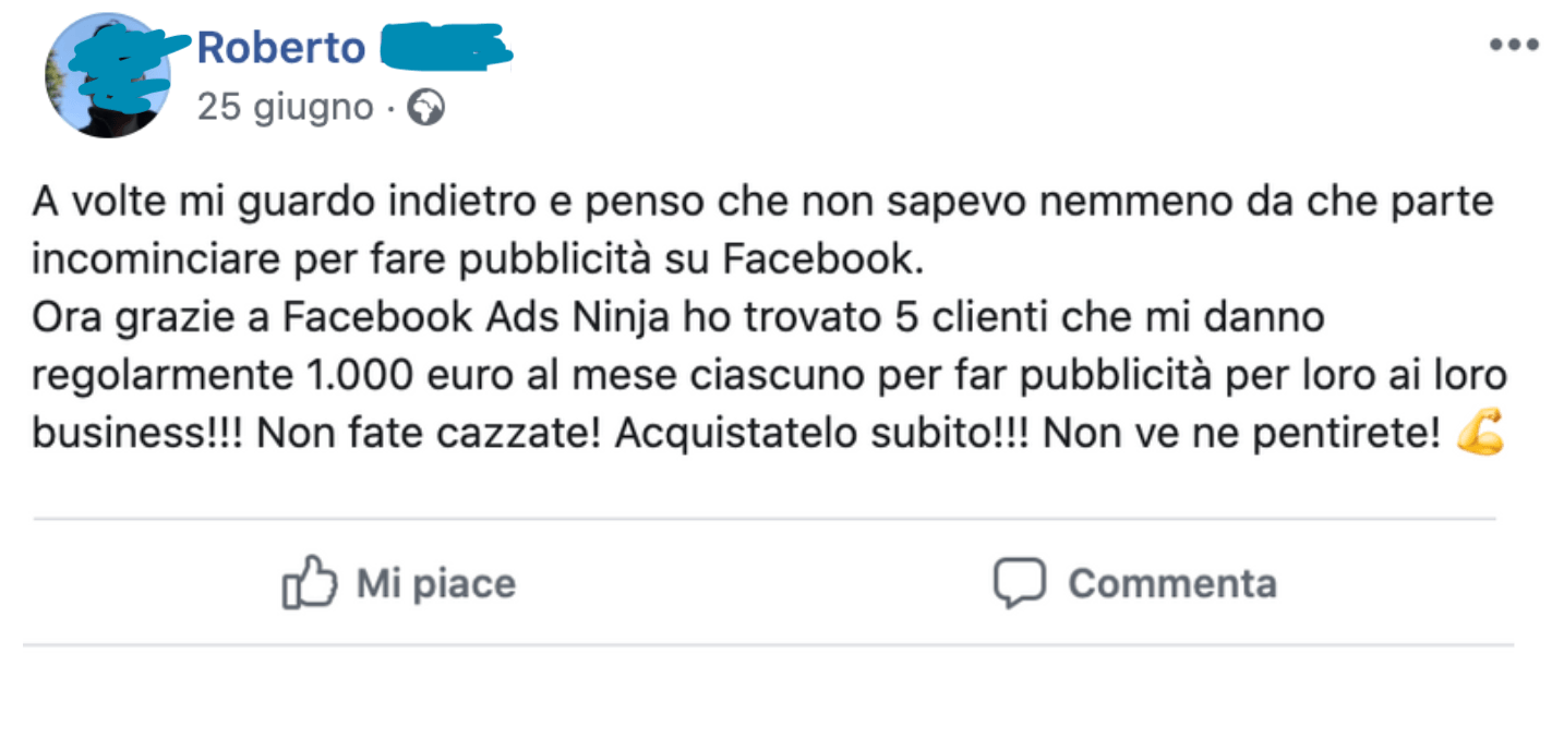 Quindi grazie alle strategie insegnate in Facebook Ads Ninja ti faccio risparmiare in 1 anno 20.000 €!!!